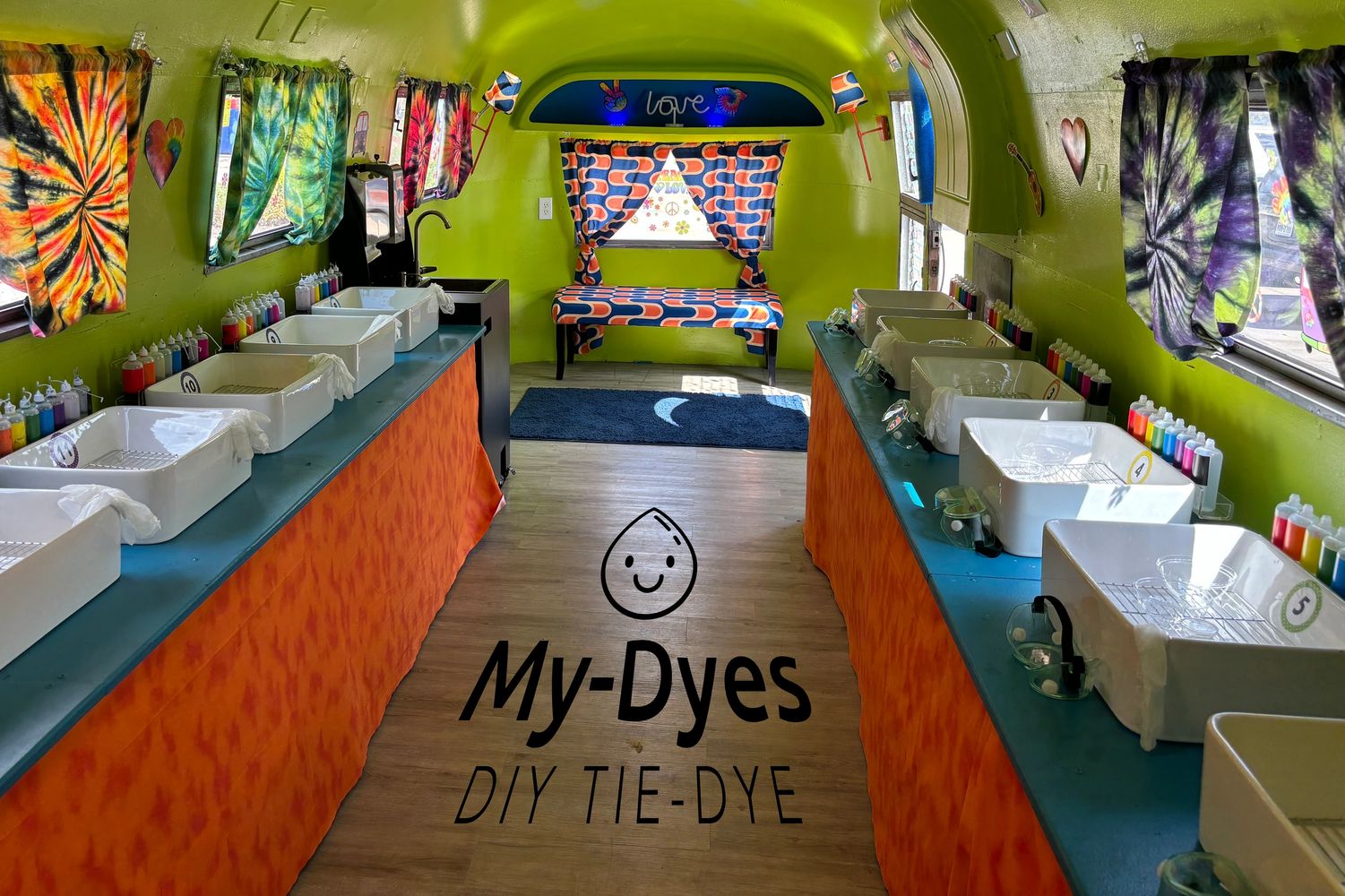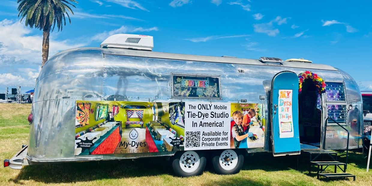 My-Dyes Airstream has been spotted popping up all over town! Our 1963 vintage Airstream has been fully converted into a one-of-a-kind tie dye studio! We specialize in making your tie dye experience fun, clean, easy and foolproof proof! Bring all your friends and create your next fashion statement. Bring the whole team and create your next set of Funky Friday shirts…or better yet add Tie-Dye Tuesday to your work week! Come to us for master classes or schedule individual studio time! We do it all. We are available for one-of-a-kind birthday parties, school or corporate events, team building, family reunions, fundraisers, music festivals and more!